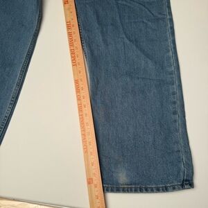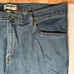 Levi's Men's 505 Regular Fit Straight Leg medium wash Blue Size (42x30) notice the small flaw at bottom of leg