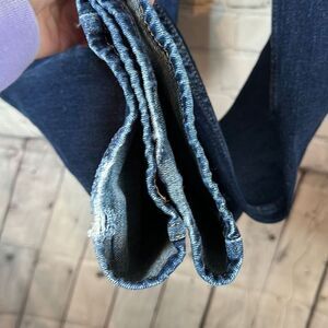 Levi’s Men’s 505 Dark Wash Straight Leg Jeans size 32x30. Some wear on back at hem from walking on you can see this in pics