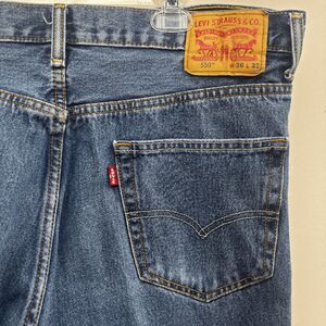 Levis Men's 550 Relaxed Fit 36x32 Dark Wash Blue Denim Jeans Faded