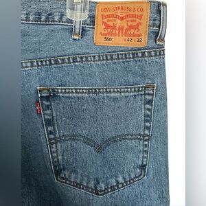 EXCELLENT CONDITION. Men's Levi's 550 Mid-Rise Relaxed Fit Tapered Leg Jeans is a fan-favorite. These jeans are designed to be comfortable everyday jeans for the everyday guy, featuring a mid-rise, a zip-fly, traditional five-pocket styling and a casual design that is relaxed through the seat and thigh. The tapered legs on this classic men's fit offer the ultimate versatility, successfully riding the line between casual and date-night ready. All that's left to wonder is how will you wear yours?