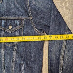 Levi's Men's Adult LARGE Dark Blue Distressed Denim Button Up Jean Jacket