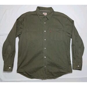 Levis Men's Army Green Denim Regular Fit Long Sleeve Button Shirt Size Large