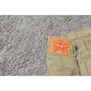 For sale: A pair of beige Levi's in a straight style, perfect for any wardrobe. These preowned jeans are a men's size 40 with a 30-inch inseam, crafted from a comfortable cotton blend. Ideal for casual or smart-casual looks, they fit into the regular size category, offering both style and comfort. A versatile addition to any men's clothing collection.