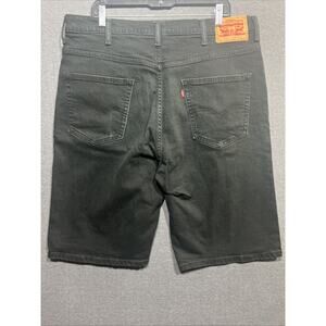 The product is a pair of men's Levi's shorts in size 38, black color, made of denim fabric with a relaxed straight fit. These Bermuda-style shorts feature a zip closure, 5-pocket design, and a high rise. The denim has stretch for added comfort and versatility, making them suitable for casual or workwear occasions in the summer, fall, or spring seasons. The classic Levi's logo accents give these shorts a timeless American vibe, perfect for everyday wear. Made in Pakistan, these shorts are machine washable for easy care.