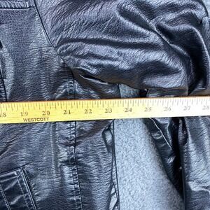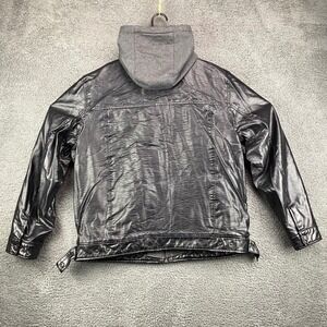 Levis Mens Black Faux Leather Hooded Trucker Jacket Large Full Zip