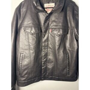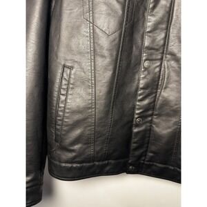 Levis Mens Black Faux Leather Trucker Jacket Quilted Lined XL LM1RU525