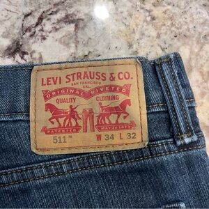 Stylish Levi's straight jeans in medium blue. Ideal for casual outings. Durable and comfortable. Excellent used condition