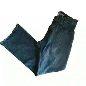 Keywords: Levi Strauss, men's jeans, size 33, blue denim, bootcut jeans, regular fit, mid-rise, casual wear, cotton jeans, pre-owned jeans.
