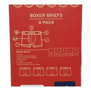 Comfortable and stylish, these Levis Men's Boxer Briefs offer a great fit with a cotton stretch fabric. Enjoy the convenience of a tag-free design in a pack of four, featuring navy and gray colors.