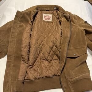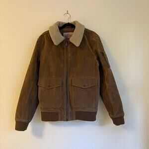Levi’s Men’s Brown Faux Suede Bomber Jacket Sherpa Collar Quilted Lining Size M