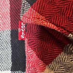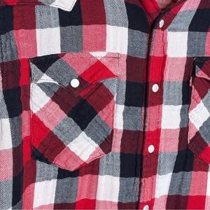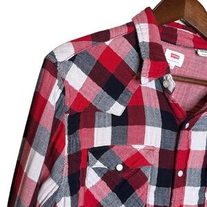 Levis Mens Button Down Shirt XL Red Black White Plaid Collared Long Sleeve