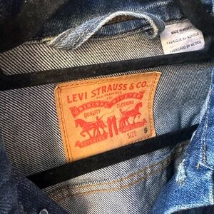 Classic Levi's denim jacket in a stylish blue. Perfect for casual outings and versatile wear. Broken in and great distressing throughout. Slim fit.