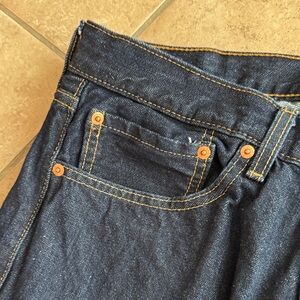 Classic Levi's jeans. Dark blue color. Comfortable fit.
