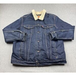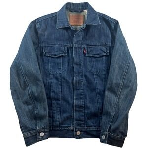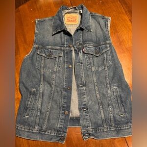 Classic Levi's denim vest in dark blue. Sleeveless design for versatile styling. Ideal for casual wear.