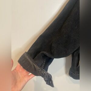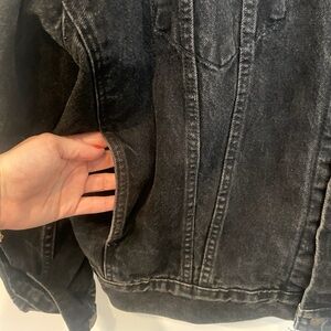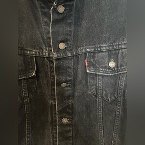 Stylish dark denim jacket by Levi's. Features button closure and chest pockets. Ideal for layering.