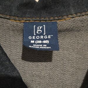 Stylish dark denim jacket with unique embroidery. Features classic button-up front and chest pockets.