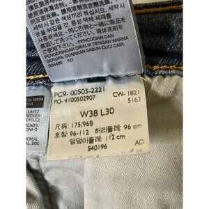 These Levis men's jeans W38 L30 are made from 98% cotton and 2% elastane for durability and stretch. Straight fit with a blue wash, they're crafted in Indonesia for superior quality.