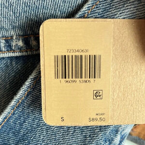 The Levi’s Distressed Denim Trucker Jacket in Still Water is the ultimate staple for an edgy, worn-in look with a timeless silhouette. Made from durable denim, this jacket features an authentic light blue wash with perfectly placed distressing for that vintage, lived-in appeal. Classic trucker details like the front button closure, flap chest pockets, and adjustable waist tabs give it Levi’s signature rugged charm. With its versatile wash, the Still Water shade is an easy match for everything from jeans to dresses, making it the perfect layering piece for adding some effortless cool to your style. New with tags.