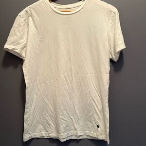 These men's Levi's jeans are a size 36x32 with a regular fit and straight style. Made from medium wash blue denim, they feature a five-pocket design, zip fly, and button closure. The jeans are made of cotton and have a solid pattern with a distressed look, suitable for casual outings or relaxed weekends. The style label has been cut out, and there is a small bleach mark on the bottom left leg.