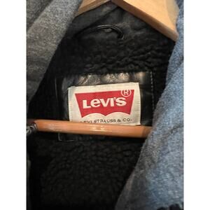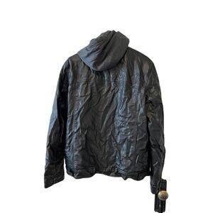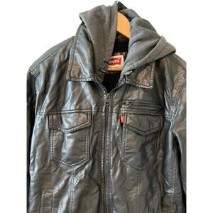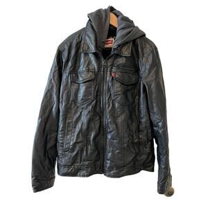 New Levi's Mens Faux Leather Trucker Bomber Jacket with Hood Black M.