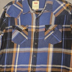 Levi's Mens Flannel Button Down Button Up Long Sleeve Blue Plaid Western Medium