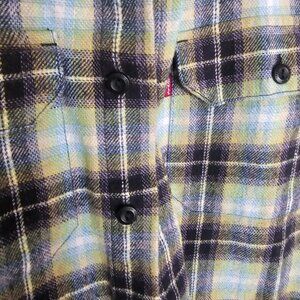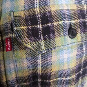 levis flannel shirt • men’s plaid button down • yellow and navy flannel • western grunge aesthetic • cotton work shirt • fall fashion staple • streetwear flannel • size small levis shirt • mens layering shirt