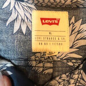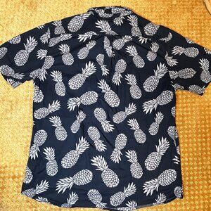 Levis Mens Hawaiian Shirt XL Navy Blue Pineapple All Over Print Short Sleeve Top