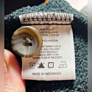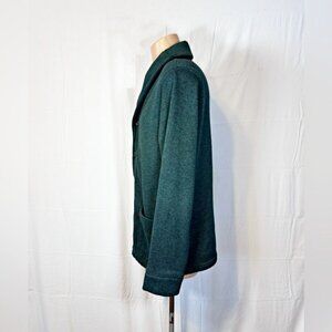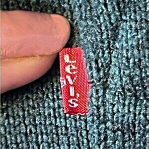 This Levi's Heather Green Eclectic Grandpa Cardigan Sweater has buttons up the front, three pockets and a shawl collar. It is 23" armpit to armpit, 21" across the back shoulders, 28" from the shoulder to the wrist and 29 1/2" long.
