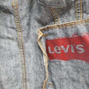 Levis Mens Jean Jacket Dark Blue Medium with Motorhead Patch Sewn on Back