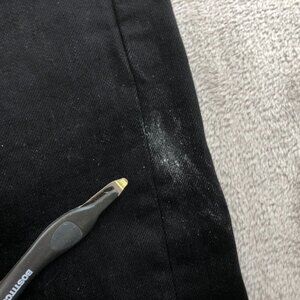 Slight white discoloration on the front left leg seam area. Please see photos