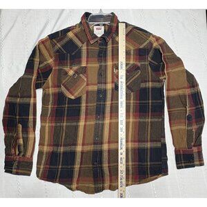 Levis Men's L Long Sleeve Plaid Flannel Shirt Button Front Chest Pockets Yokes