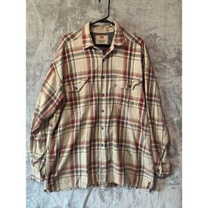Levi's Men's L2 Long Sleeve Button Down Shirt XL Tan Red Plaid Vintage Y2K Flaws