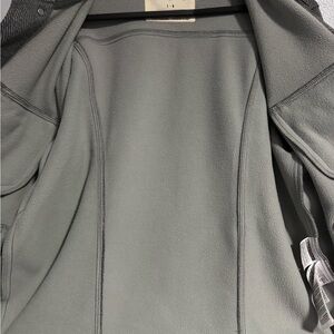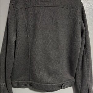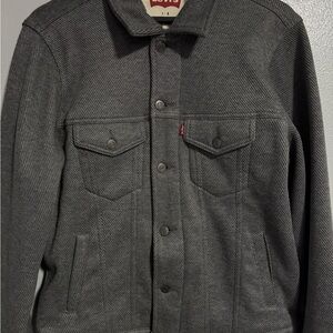 Worn maybe twice, like new, no issues. Smoke free home. Button up, nice grey texture, soft inside (like Sherpa or something), and pockets!