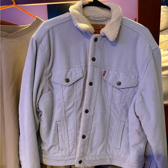 Levi's Men's Light Blue Corduroy Jacket with Sherpa Collar