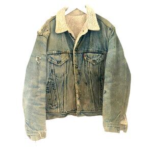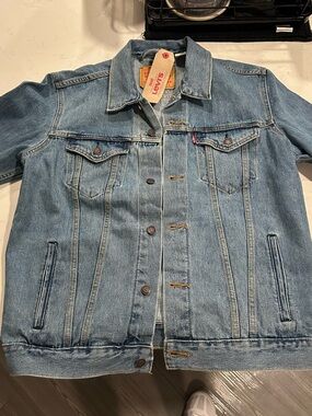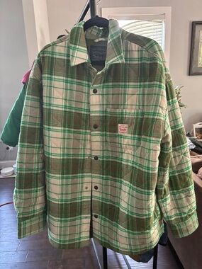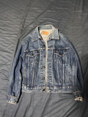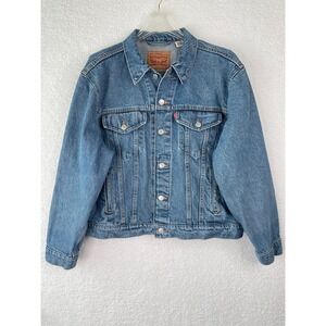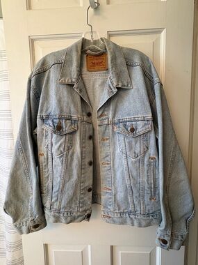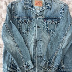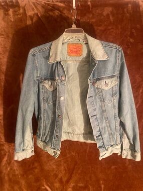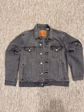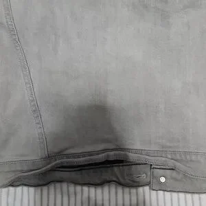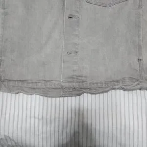 Light gray shirt jacket by Levi's. Ideal for layering. Casual and stylish. Frayed at buttom front and back. Important. see photo!