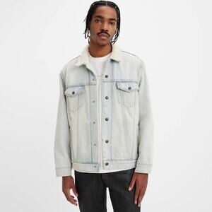 Levi’s Mens Light Wash Denim Relaxed Fit Sherpa Trucker Jacket Snap Button XXL