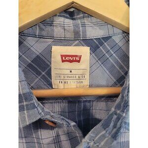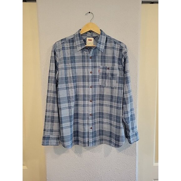 Levi's Men's Long Sleeve Blue Plaid Button Up Shirt Front Pocket Size Medium