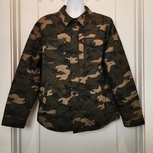 Levi's Men's M Camo Quilted Shirt Jacket Trucker Diamond Stitch Zip Shacket