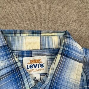 Levi's Mens M Shirt Blue Short Sleeve Button Up Plaid Wester Breathable Workwear