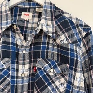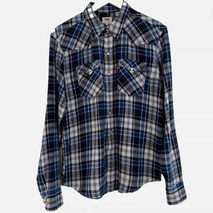 Levi's Men's Medium Classic Western Red Tag Blue Plaid Cowboy Shirt Pearl Snaps