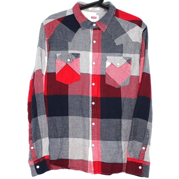 Levis Mens Medium Western Pearl Snap Soft Button Up Shirt A1598