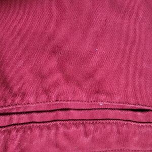 Jacket is pre-owned and has some wear. There are very smalls spots right hip pocket and back (seen in last 2 pictures) Very heavy, warm and color is vibrant. The jacket does fit on the small side so it b fits like a large
