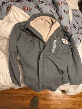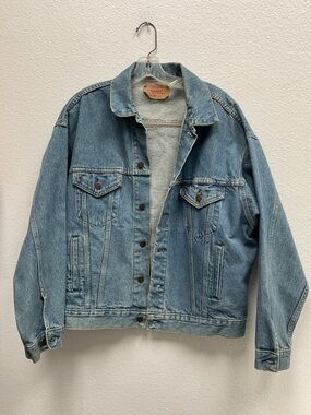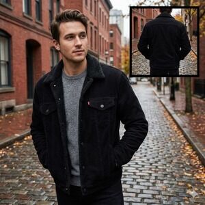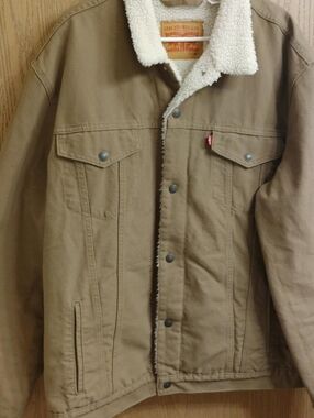 Stylish Levi's trucker jacket with sherpa lining. Button-up front. Two chest pockets.