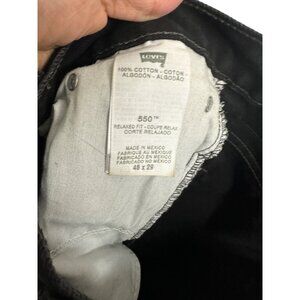 These Levi's relaxed fit jeans offer comfort and durability with a classic black design, suitable for various settings. Their sturdy denim composition ensures long-lasting wear, making them a reliable choice for everyday use.