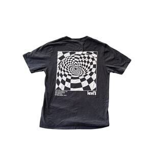 This Levi’s men’s relaxed fit tee in size small features a clean black color with subtle branding and a bold graphic twist. The front has a small Levi’s logo on the right chest, while the back showcases a striking whirlpool checkerboard design that adds an edge to the classic style. Made for comfort with a relaxed fit and soft fabric, this shirt blends everyday wear with modern graphic appeal.