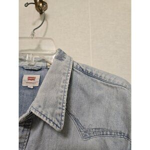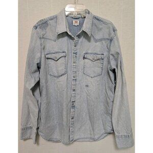 Levi's Mens Scribble Stitched Denim Button Down Shirt Size XL Blue