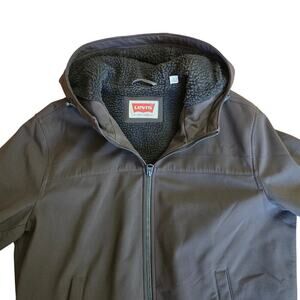 Levi's men's sherpa jacket, full zip Levi's outerwear, Levis Coat, warm Hooded jacket, size L jacket, polyester blend jacket, hooded winter jacket, casual Levi's jacket, men's sherpa-lined