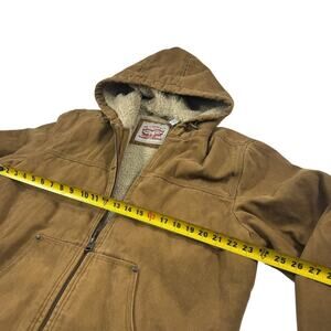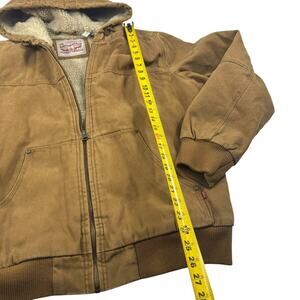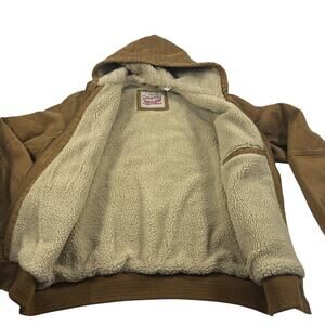 Levi’s Men’s Sherpa Lined Canvas Hooded Jacket Brown Size L Warm Fleece Interior