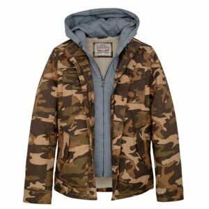 Levi's Men’s Size L Camouflage Washed Cotton Sherpa Lined Hooded Military Jacket