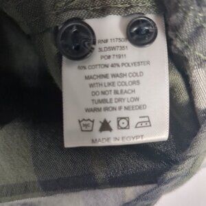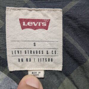 Levis Mens Small Green/Black/White Plaid Button Up Short Sleeve Shirt exudes vintage charm and modern style. Crafted from soft cotton, this multicolor plaid shirt offers a comfortable fit and timeless appeal, perfect for casual outings or stylish layering.